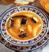 Vertemos el caldo de pescado, el congrio cortado a rodajas, el azafrán machacado y una pizca de sal.