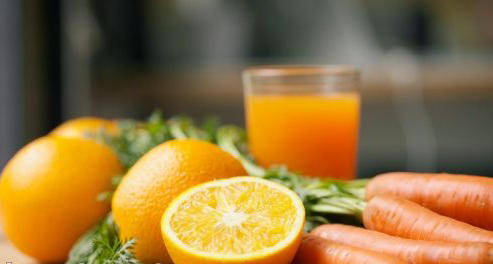 Pasar los jugos a una jarra grande y revolver con el sirope. Servir con hielo de zanahoria.