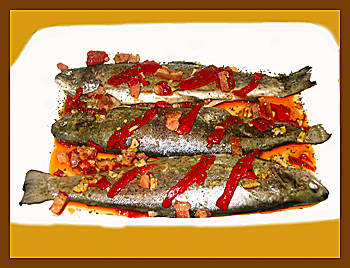 Limpiar las truchas desviscerarlas, lavarlas y escurrirlas bien.