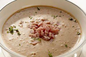 Freír el aderezo cebolla picadita, margarina, tomate cortado menudo, sal y pimienta, tocino cortado en trocitos, todo esto mezclar con los frijoles colados, agregar el puré de tomate y dar un hervor, en el momento de servir echar la leche y trocitos de pan frito.