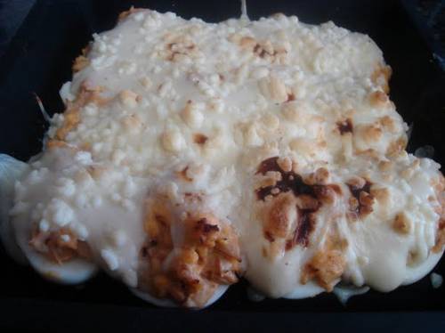Una manera rusa de comer huevos rellenos, podríamos sintetizarla como huevos rellenos gratinados. Receta para 4 personas.