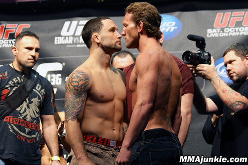 El pesaje de ambos luchadores dejó ver la seguridad y agresividad de Egdar, quien finalmente venció el último sábado a Maynard, en la tercera lucha de ambos.
