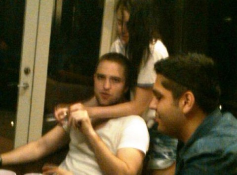 La escena aparentemente aconteció en una sala. En esta fotografía Kristen aparece de pie y abrazando a Rob quien está sentado y mirando de frente la toma. Ambos se toman de la mano.