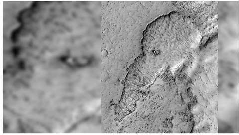 La imagen fue tomada sobre el flujo de lava en un lugar conocido como Elysium Planitia, como parte del Experimento de Imagen Científica de Alta Resolución (HIRISE, por sus siglas en inglés). En la fotografía, el norte se ubica abajo. No está claro en qué fecha fue tomada.
