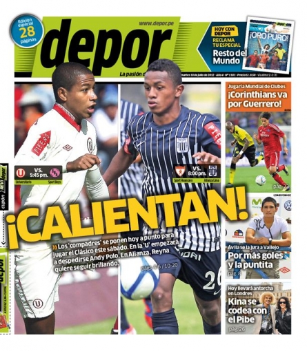 Dicho vespertino también informa sobre la partida del juvenil delantero merengue Andy Polo, quien jugará el clásico y partirá a Italia para enrolarse al Génova.