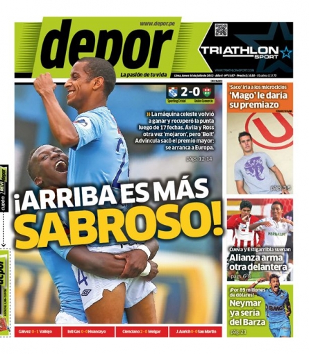 Por su parte, el diario Depor tituló: '¡Arriba es más sabroso!' tras la victoria rimense que le permitió alcanzar la punta del torneo local.