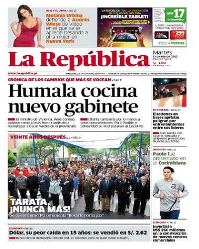 Entre los temas más destacados por la prensa escrita peruana para hoy martes 17 de julio, están los aparentes cambios que efectuará el jefe de Estado Ollanta Humala en la Presidencia del Consejo de Ministros, presidida hasta el momento por Óscar Valdés.
