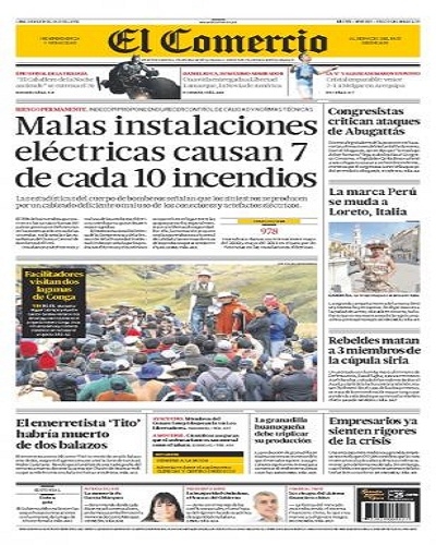 Culminamos este recorrido de los diarios con El Comercio. El decano de la prensa escrita local advierte de los problemas que causan las malas instalaciones eléctricas en los inmuebles, que son las responsables de 7 de cada 10 incendios.