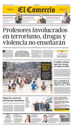 Entre los temas más destacados por la prensa escrita peruana para hoy jueves 9 de agosto, está la prohibición de ejercer la docencia a los profesores que hayan sido condenados por delitos de terrorismo, de acuerdo al proyecto de Ley Reforma Magisterial que presentó el Ministerio de Educación al Congreso de la República para la evaluación correspondiente.