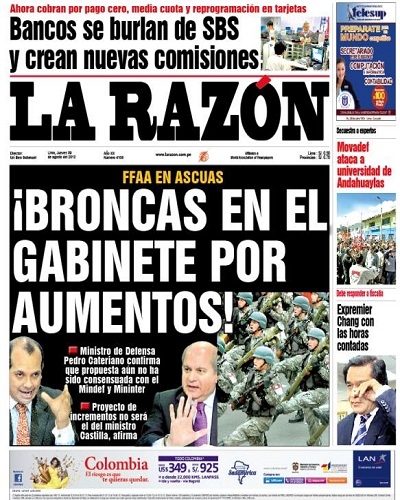 Cerramos este recuento de los vespertinos más importantes con La Razón. El titular del ministerio de Defensa, Pedro Cateriano, respondió los cuestionamientos contra su labor por el pedido de facultades del Poder Ejecutivo para legislar la remodelación institucional de su portafolio y el del Interior. “A aquellos que estuvieron sentados en mi despacho, que ahora son críticos, ¿por qué no lo hicieron? Si era tan fácil la solución, ¿por qué no se adoptó?”, dijo el funcionario en rueda de prensa, rechazando además una posible militarización del plan político del Ejecutivo.