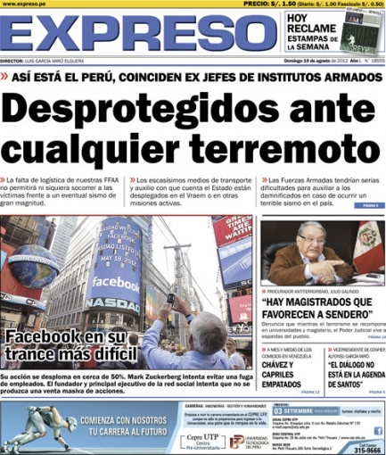 Por su parte, el diario Expreso hace hincapié en los recursos que se tiene a la mano ante un eventual sismo de gran intensidad. El general FAP (r) Felipe Conde Garay advirtió que las Fuerzas Armadas tendrían serios problemas cuando cumplan las funciones respectivas si se presenta un fuerte temblor en el país, debido a que no se cuenta con el número necesario de equipamiento y naves para prestar apoyo a la población.