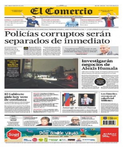 Entre los temas más destacados por la prensa escrita peruana para hoy lunes 20 de agosto, están los presuntos acuerdos irregulares que firmó el Estado con la empresa del hermano del jefe de Estado, Alexis Humala, para suministrar medicamentos a diversos hospitales del país.