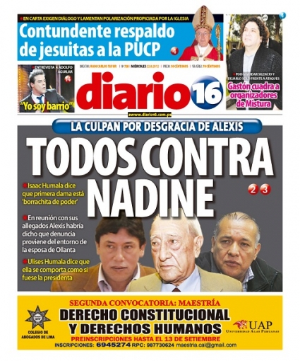 Ahora estamos con Diario 16. El padre del presidente de la República, Isaac Humala, arremetió duramente contra la Primera Dama Nadine Heredia, quien prometió sanciones ejemplares si se comprueba que la empresa del hermano de su esposo, Alexis Humala, obtuvo de forma ilícita concesiones para vender medicinas a diversos portafolios del Ejecutivo.