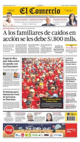 Cerramos este recuento con el decano de la prensa local, El Comercio, donde se habla de una deuda de 800 millones de soles aproximadamente a los familiares de las personas caídas en acción.