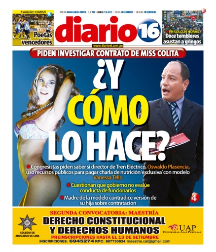 Ahora es el turno de Diario 16. Viviana Mazzei, madre y representante de la Miss Colita Vanessa Tello, aclaró que la información que dio su hija sobre nutrición a la Autoridad Autónoma del Tren Eléctrico (AATE), fue oída por más de seis personas y no solo por su director ejecutivo Oswaldo Plasencia, negando lo dicho por este último al respecto.