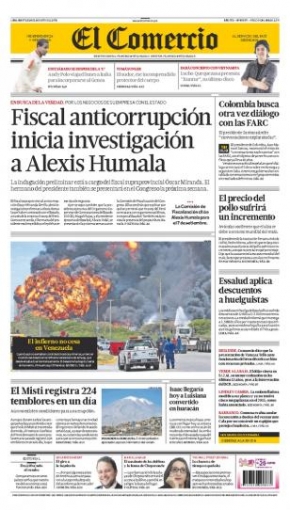 Iniciamos el desarrollo de la información con el diario El Comercio. La apertura de las investigaciones se da luego que la semana pasada el procurador anticorrupción Julio Arbizu presentara una denuncia penal en el Ministerio Público contra el menor del clan Humala Tasso, por los supuestos negocios entre el Estado y la compañía del mencionado.
