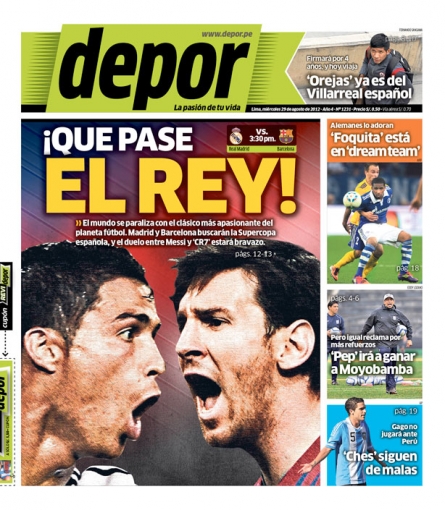 Continuando con este recorrido, el diario Depor titula: '¡Que pase el Rey!', en alusión al clásico español que paralizará al mundo entero como ya es costumbre.