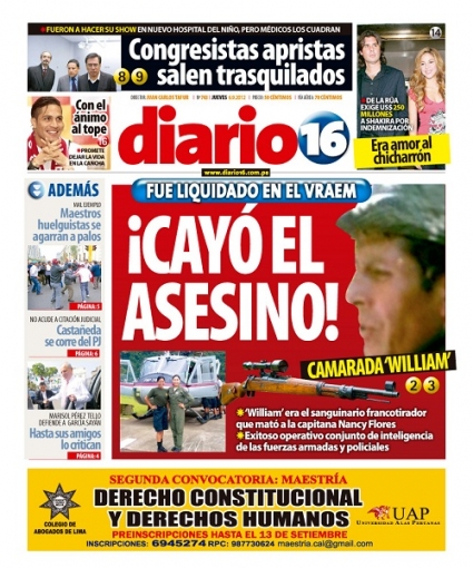 Cerramos este recuento con Expreso y Diario 16, que también exhiben en su presentación la caída del “Camarada William” en el VRAEM.