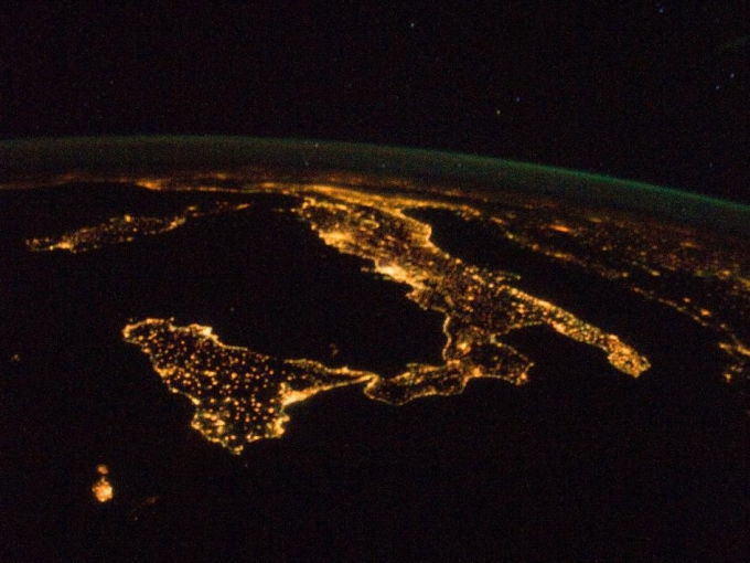 Es una imagen espectacular de cómo se ve el país italiano de noche, y con tanta claridad, que se muestra las curvas que forjan esta gran bota.