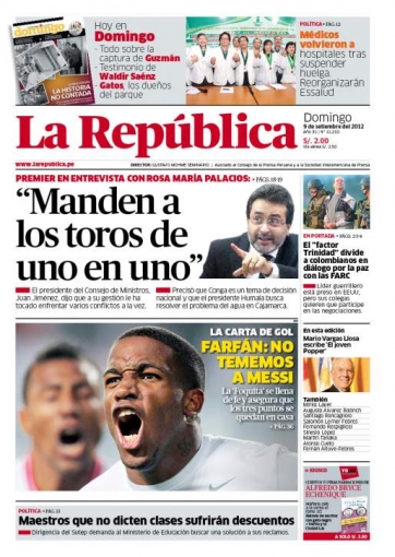 Por su parte, el periódico La República hace hincapié a los proyecto del primer ministro Juan Jiménez. El Jefe del Gabinete informó que la Oficina Nacional de Diálogo y Sostenibilidad de su sector ha sido repotenciada con la finalidad de ofrecer una nueva estrategia que permita afrontar estas situaciones con otra dinámica.