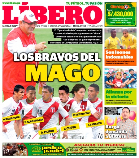 De esta manera, el diario Líbero tituló: 'Los bravos del Mago', en referencia a dicho llamado en el que resalta la presencia de Andy Pando, Paulo Albarracín, José Carvallo, Edwin Retamoso, Santiago Acasiete, Juan Cominges, Joel Sánchez, Irven Ávila, William Chiroque, entre otros.