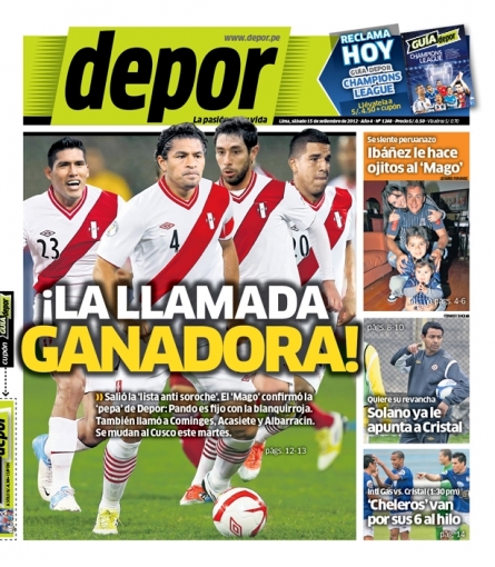 El diario Depor también destaca en su carátula la convocatoria para el microciclo que empieza la próxima semana en la ciudad imperial titulando: 'La llamada ganadora', en alusión a los llamados de diversos jugadores del medio local que tienen experiencia en la altura y le serán de mucha utilidad ante los altiplánicos.