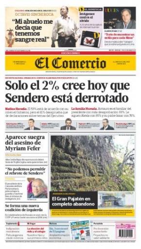 Entre los temas más destacados por la prensa escrita peruana para hoy domingo 16 de setiembre, está la reciente encuesta elaborada por la consultora Ipsos Apoyo Opinión y Mercado, donde la labor del jefe de Estado Ollanta Humala es aprobada por el 41% de los peruanos, elevando a 1% su popularidad con respecto al mes anterior.