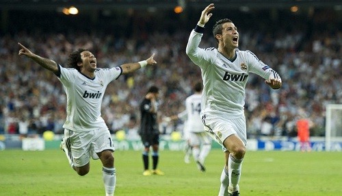 Real Madrid: Casillas; Arbeloa, Sergio Ramos, Pepe, Marcelo; Khedira, Xabi Alonso; Di María, Modric, Ronaldo; y Benzema.
