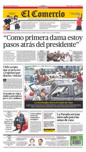 Entre los temas más destacados por la prensa escrita peruana para hoy viernes 21 de setiembre, están las declaraciones de la Primera Dama Nadine Heredia, respecto al sondeo de la consultora Ipsos Apoyo que la coloca como uno de los personajes más influyentes de la política peruana.