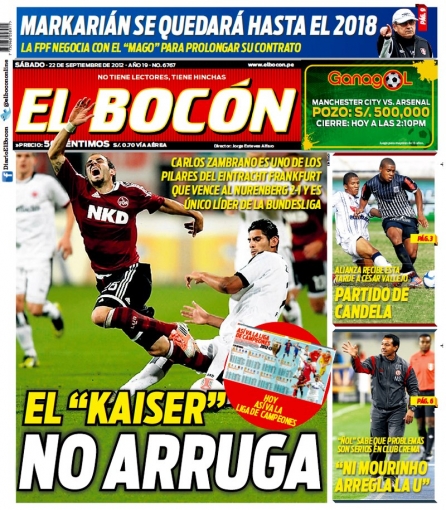 Asimismo, dicho medio resaltó el triunfo del Eintracht Frankfurt 2-1 sobre el Nuremberg con el peruano Carlos Zambrano como uno de los pilares de dicho equipo que es el único líder de la Bundesliga.