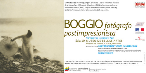 Enmarcados en la alegría que proporcionan los viernes nocturnos de los museos, organizados por el Gobierno Bolivariano a través del Ministerio del Poder Popular para la Cultura, este viernes 28 el Museo de Bellas Artes, inaugurará la muestra del maestro de la plástica Emilio Boggio, titulada Boggio fotógrafo postimpresionista, a las 7:00 pm en la referida institución ubicada en la Plaza de los Museos, Los Caobos, Caracas.