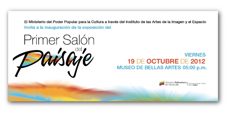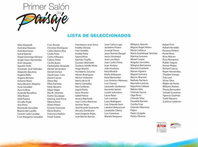 El Gobierno Bolivariano a través del Ministerio del Poder Popular para la Cultura mediante el programa bandera Creadores Visuales de Venezuela se complace en anunciar los artistas y obras seleccionadas que participarán en el I Salón del Paisaje, el cual se llevará a cabo el viernes 19 del próximo mes de octubre, a las 5:00 pm, en el edificio Neoclásico del Museo de Bellas Artes, ubicado en la Plaza de los Museos.
