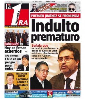 Cerramos este repaso con La Primera. El premier Juan Jiménez señaló que el exmandatario Alberto Fujimori es “un interno más”, al ser consultado sobre la posibilidad de que sea indultado por su supuesto grave estado de salud. “El señor Fujimori es un interno más del sistema carcelario. Creo que hay que dejar que las instancias pertinentes hagan su trabajo”, remarcó el Jefe del Gabinete Ministerial a la prensa.