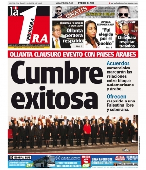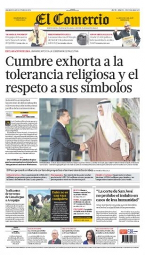 Cerramos este recorrido con el decano de la prensa local, El Comercio. La III Cumbre América del Sur-Países Árabes (ASPA) culminó ayer con la firma de la Declaración de Lima por parte de todos los presidentes participantes, donde además se condenó los hechos violentos en el mundo y se reafirmó el respeto a las costumbres y creencias de la región árabe.