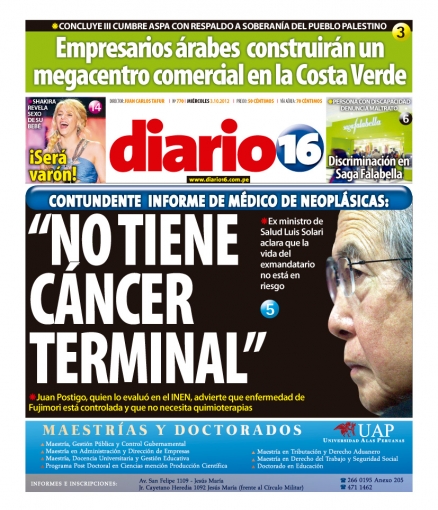Ahora es el turno de Diario 16. El doctor de cabeza y cuello del Instituto de Enfermedades Neoplásicas (INEN), Juan Postigo, negó que el exmandatario Alberto Fujimori padezca un cáncer terminal, tal como dijeron algunos de sus familiares.