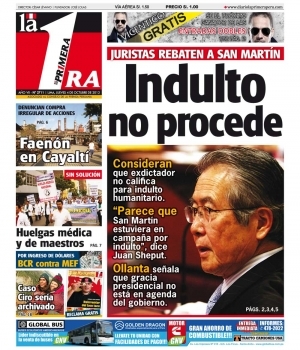 Bajo esa misma línea se encuentra el vespertino La Primera. El abogado del Instituto de Defensa Legal (IDL), Carlos Rivera, aclaró que la Corte Interamericana de Derechos Humanos (CIDH) impide el indulto por delitos de lesa humanidad.