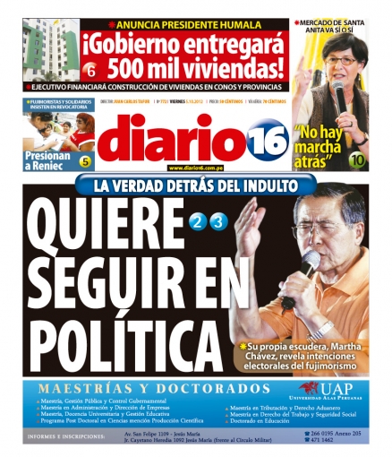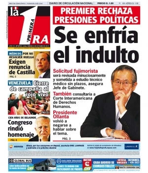 Cerramos este repaso con La Primera, que exhibe en su portada las declaraciones de diversos funcionarios y políticos sobre el probable indulto para Fujimori, como es el caso del gobernante Humala quien pidió no volver a tocar el tema.