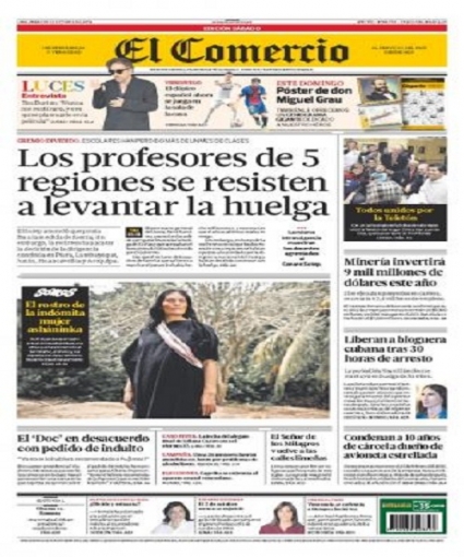 Bajo esa misma línea aparece el decano de la prensa local, El Comercio. Pese a que el Sutep anunció el cese de sus manifestaciones, en las regiones de Piura, Lambayeque, Junín, Huancavelica y Arequipa, varios maestros siguen recorriendo las calles y exigiendo mejoras para sus colegas.