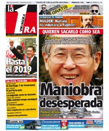 Culminamos este recorrido con La Primera. Un reciente sondeo de la consultora CPI revela que el 70% de la población limeña aprueba que el exmandatario Alberto Fujimori acceda al indulto humanitario, por presentar un presunto grave estado de salud.