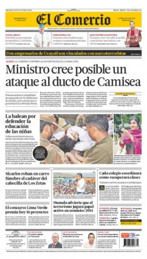 Bajo esa línea aparece el decano de los medios locales, El Comercio. El ministro del Interior Wilfredo Pedraza indicó que el sistema de seguridad en esta zona del Cusco se ha reforzado para el gasoducto, con el propósito de evitar que se repitan este tipo de hechos.