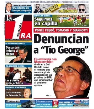 Entre los temas más destacados por la prensa escrita local para hoy sábado 13 de octubre, resalta la acusación contra el exprimer ministro Jorge del Castillo en el caso Business Track (BTR) por parte de Gisella Giannotti, Elías Ponce Feijoó y Carlos Tomasio, sentenciados tras realizarse las pesquisas correspondientes.