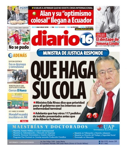 Ahora estamos con Diario 16. La ministra de Justicia y Derechos Humanos, Eda Rivas, señaló que su portafolio dará prioridad a los presos que padecen una enfermedad en estado terminal, luego de ser consultada al pedido de indulto por parte de la familia del exmandatario Alberto Fujimori.
