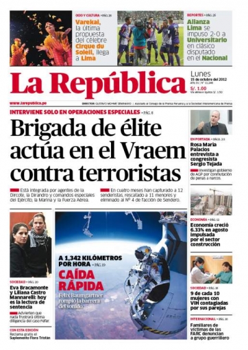 Por su parte, el vespertino La República se ocupa de los temas relativos a la subversión en el interior del país. En los últimos meses la Brigada Especial Antiterrorista ha realizado varias operaciones secretas como “Albergue”, “Nuevo Horizonte” y Mantaro entre otros, con el objetivo de dar con el paradero de los hermanos Víctor, Jorge y Martín Quispe Palomina, cabecillas terroristas que operan en la selva de la región Cusco correspondiente al denominado Valle de los Ríos Apurímac, Ene y Mantaro (Vraem).