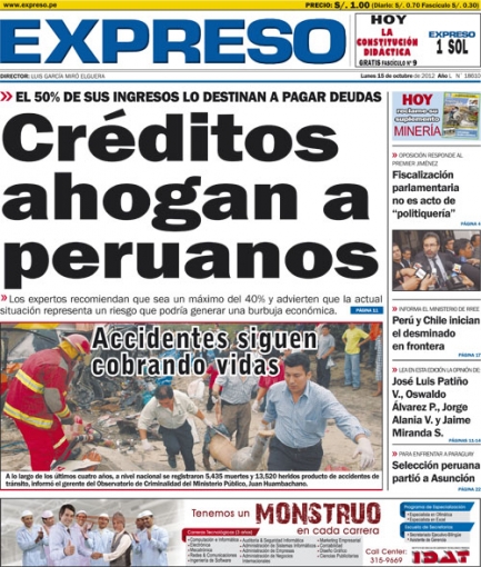 De otro lado, el periódico Expreso cede interés al pago de los créditos contraídos con los bancos. De acuerdo a Jorge Guillén, economista y catedrático de la Universidad Esan, entre el 40 y 50% de l total de los ingresos de una familia está destinado a pagar estos compromisos.