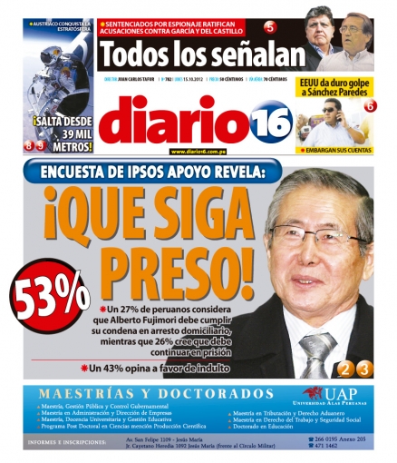 Ahora es el turno de Diario 16. Una reciente encuesta de la consultora Ipsos Apoyo revela que el 53% de peruanos pide que el exmandatario Alberto Fujimori cumpla su condena desde su domicilio.