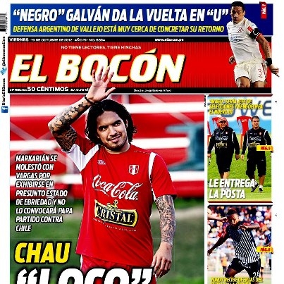 Por su parte, el vespertino Depor habla de la posibilidad de que los dirigidos por el entrenador Sergio Markarián, jueguen un cotejo amistoso con el pentacampeón mundial Brasil para el próximo año; mientras que El Bocón afirma que el preparador uruguayo no convocaría más a Vargas, debido a las declaraciones que este dio ayer en aparente estado de ebriedad.