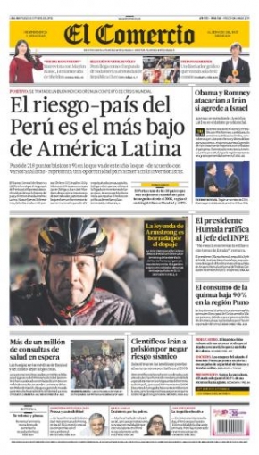 Finalizamos este repaso con el decano de la prensa local, El Comercio, que resalta el Riesgo País del Perú por ser el más bajo de Sudamérica. De acuerdo al Banco Central de Reserva (BCR), este parámetro llegó a los 91 puntos básicos el pasado 18 de octubre, convirtiéndose en el más bajo en su historia.