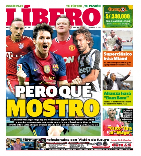 De otro lado, Depor también exhibe en su primera hoja otros partidos por la Champions League, como el que protagonizarán el campeón italiano Juventus con el danés Nordsjaelland, el Bayer Munich ante el Lille francés y el Manchester United con el portugués Sporting Braga.