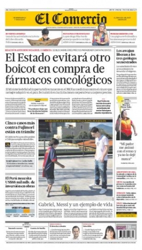Culminamos este repaso con el decano de la prensa local, El Comercio, que exhibe en su presentación al Ministerio de Salud, que importará directamente desde el 2013 las medicinas contra el cáncer que no se puedan adquirir dentro del Perú, con la finalidad de evitar probables irregularidades en este tipo de operaciones.
