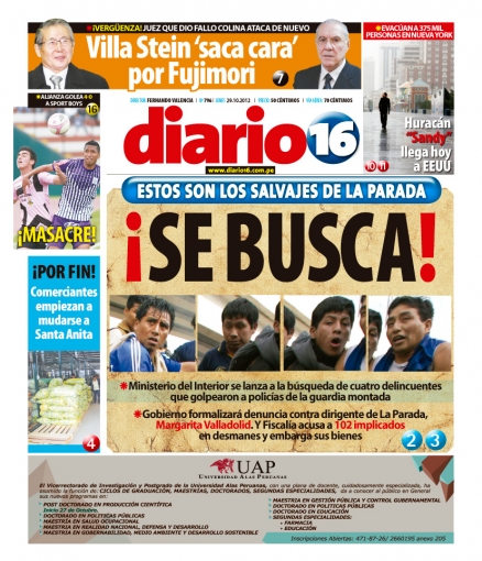 La misma temática es tocada por Diario 16 aunque desde otro ángulo. La cabeza del Ministerio del Interior, Wilfredo Pedraza, adelantó que en los próximos días se lanzará una campaña que permita ubicar a los vándalos que promovieron y participaron en los actos de violencia ocurridos en La Parada del pasado jueves, donde dos policías terminaron gravemente heridos y cuatro civiles perdieron la vida durante el operativo de desalojo.